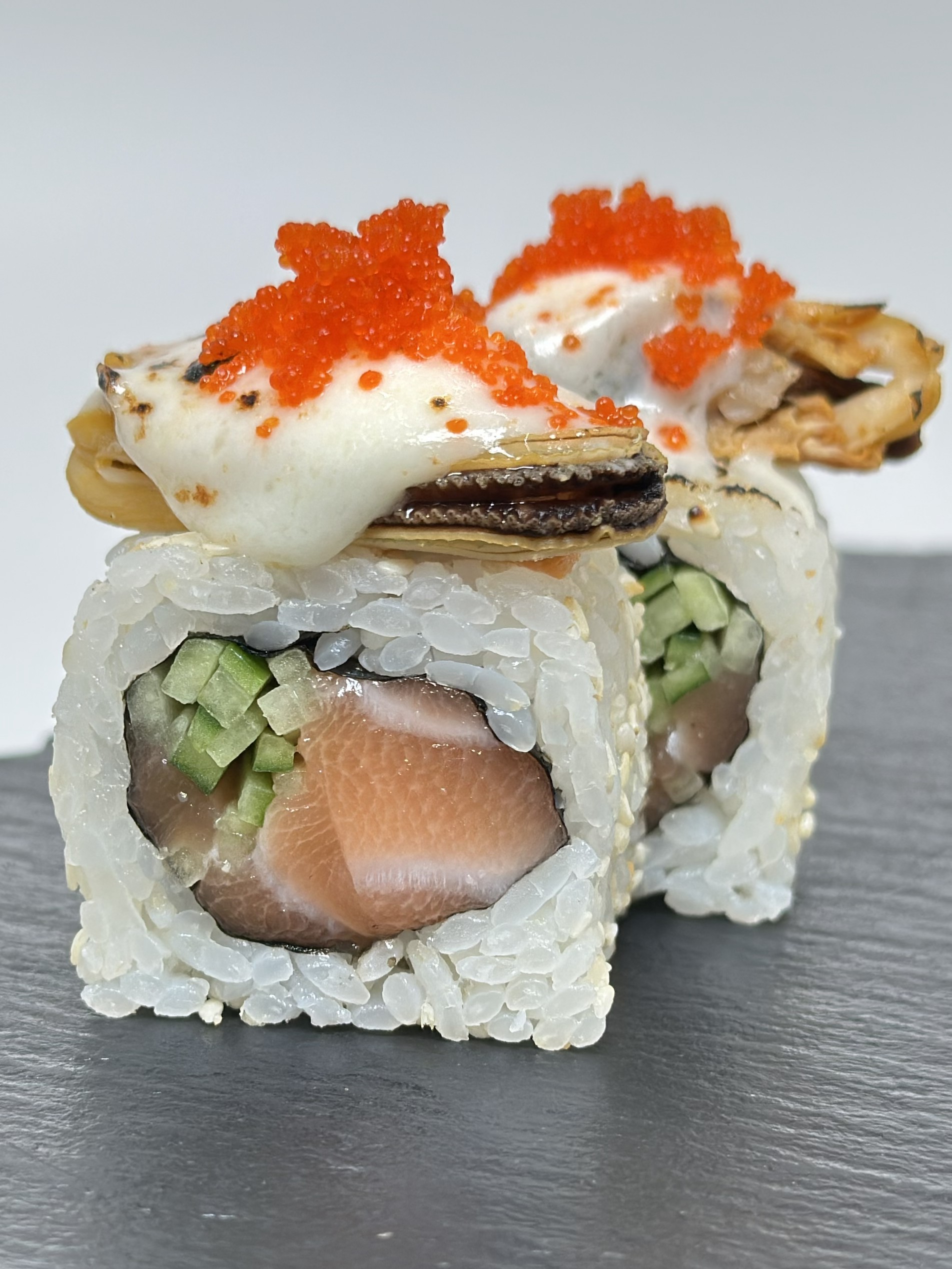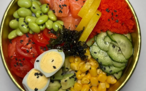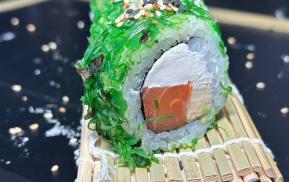 (лосось, шиитаке, рис, яйцо, лук зеленый, вакаме)